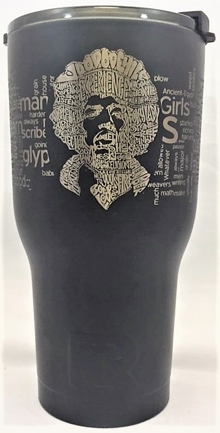 We can custom laser engrave your tumbler or glassware to add a beautiful logo or any other artwork all the way around the cup using our CNC Laser etching machine with a rotary axis to accurately engrave the surface covering the entire circumference of the cup.